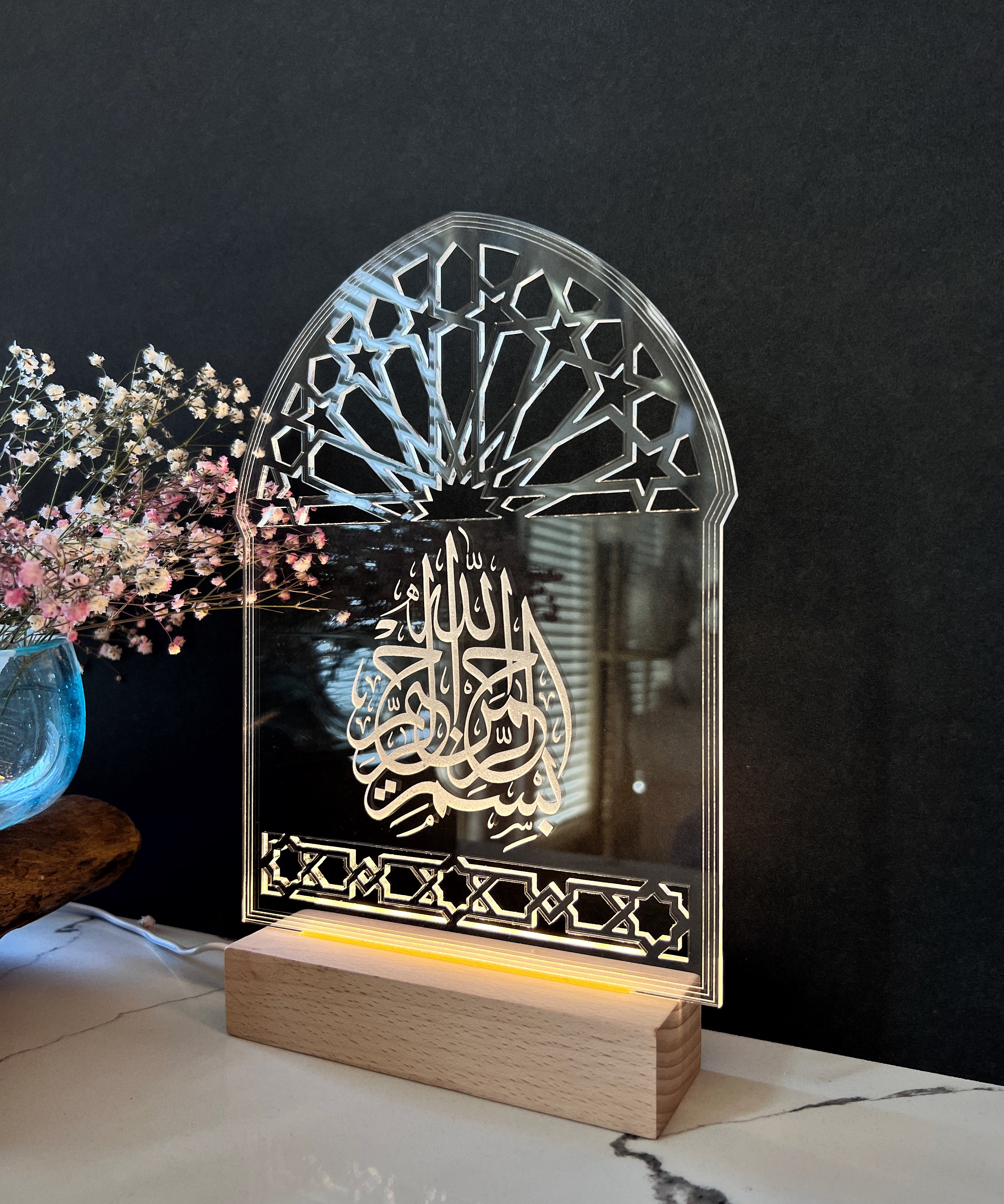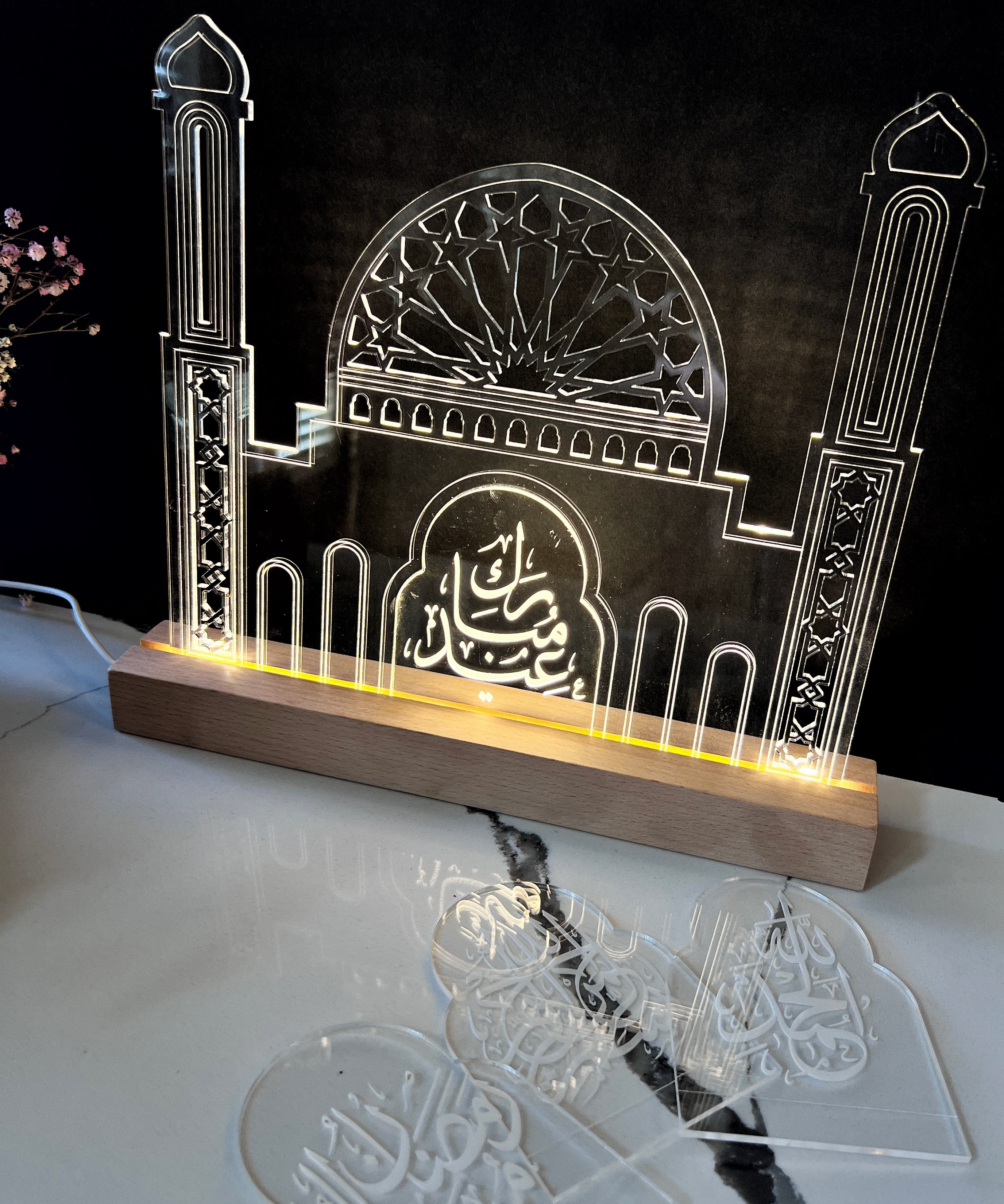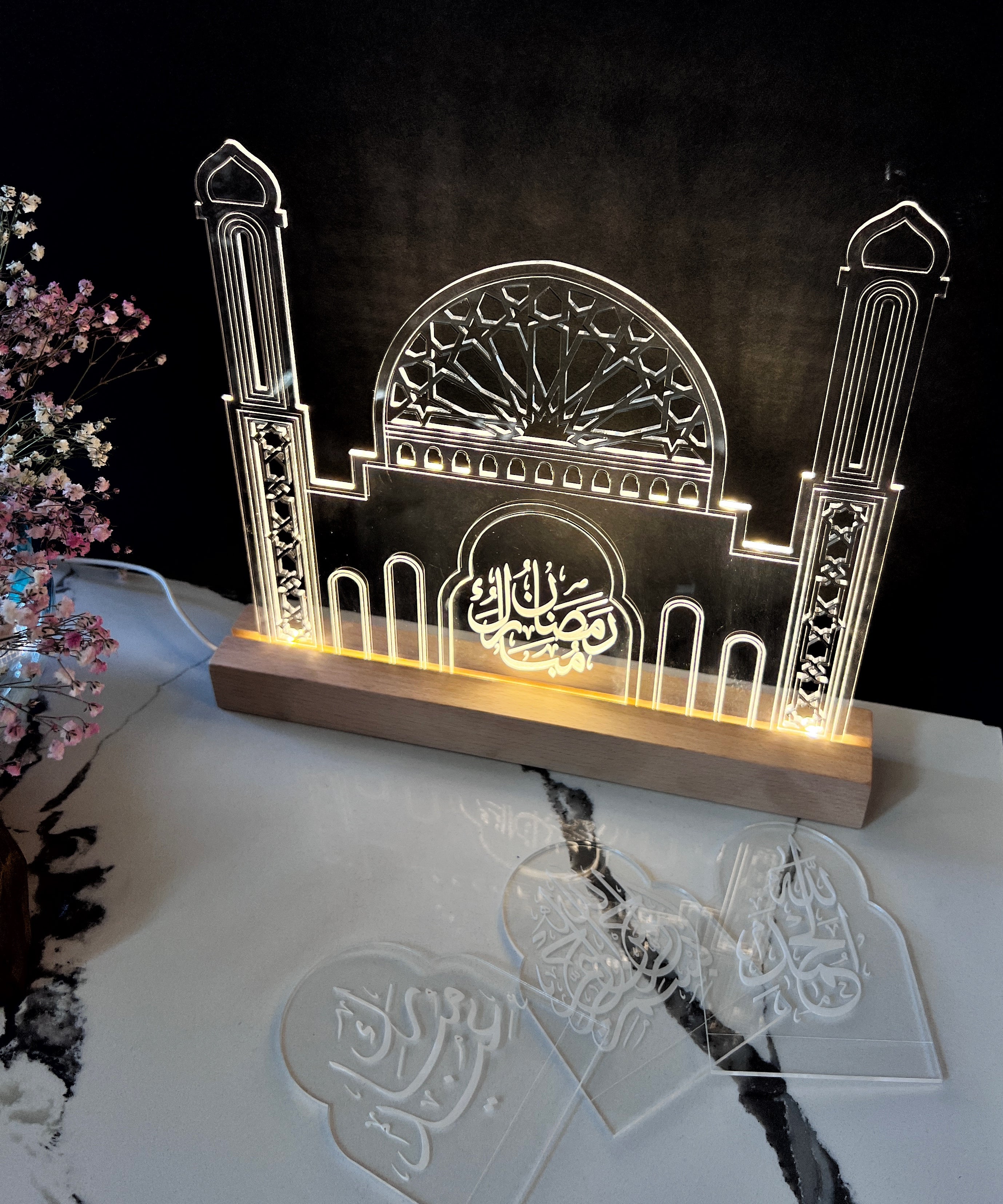 Light up mosque with interchangeable doors Ramadan kareem, Eid Mubarak, Alhamdulillah and Bismillah