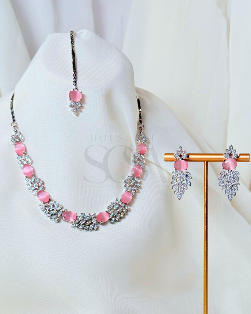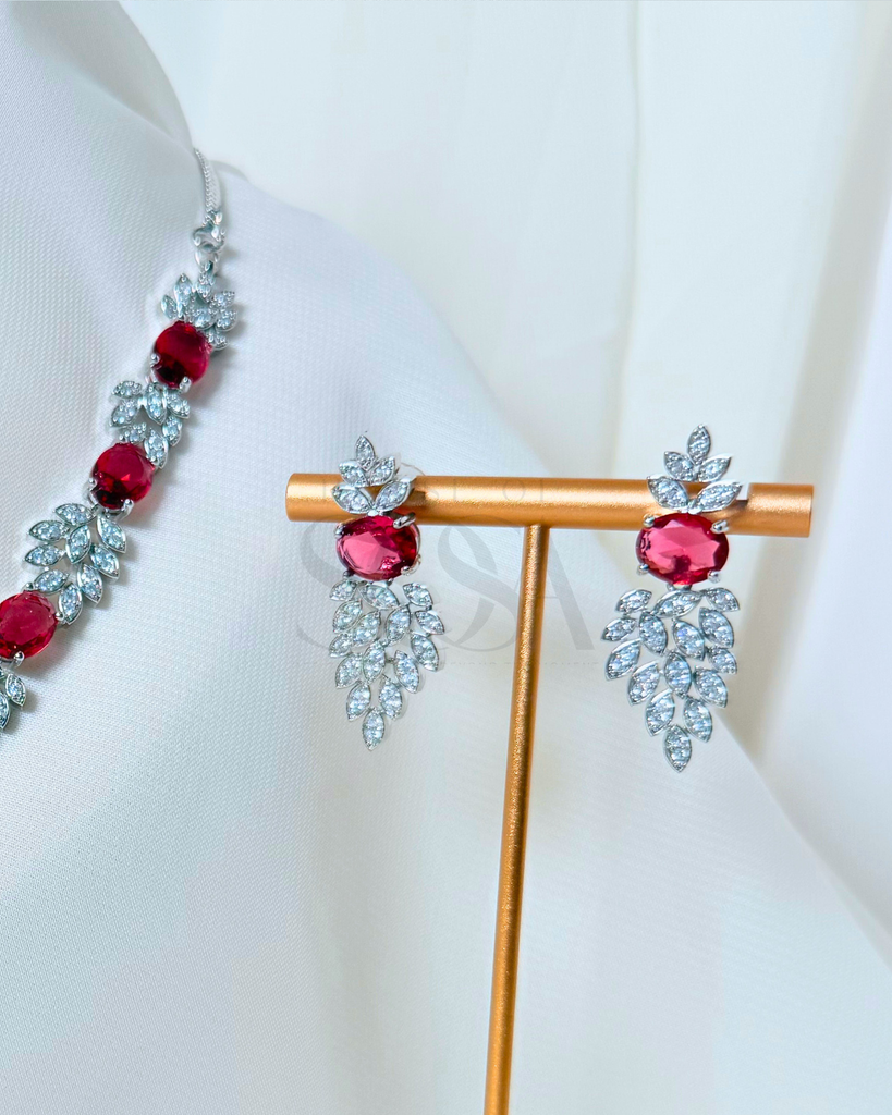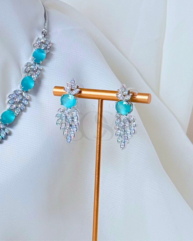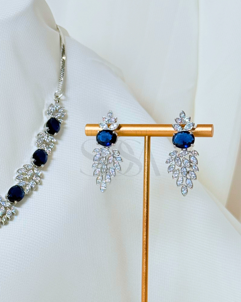 Graceful and luminous, the Zaria Set (Silver) is thoughtfully curated as part of the Aurelia Collection. Defined by its leaf-inspired detailing and softly faceted stones, this set reflects a refined balance of elegance and modern charm.