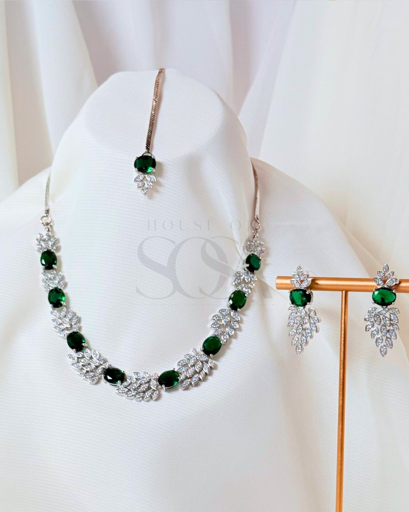 The silver-tone finish enhances the brilliance of each stone, creating a look that feels polished yet effortlessly wearable. Selected for its fluid silhouette and timeless appeal, the Zaria Set transitions beautifully from formal celebrations to intimate gatherings.