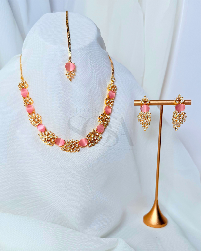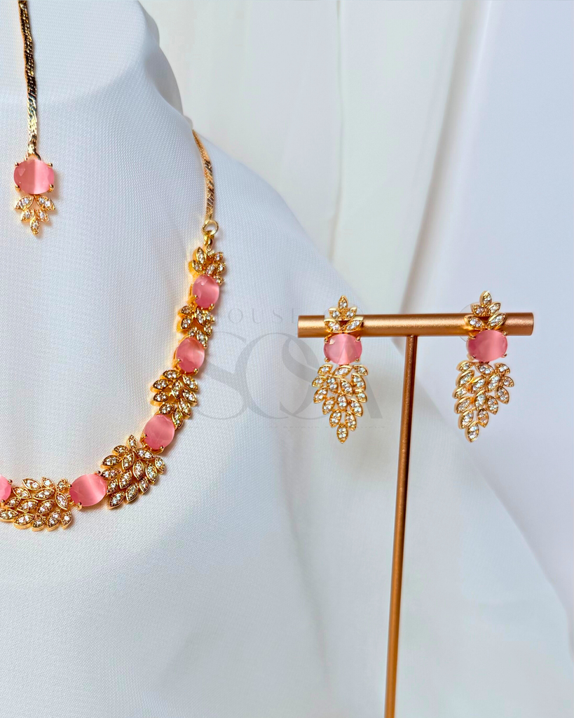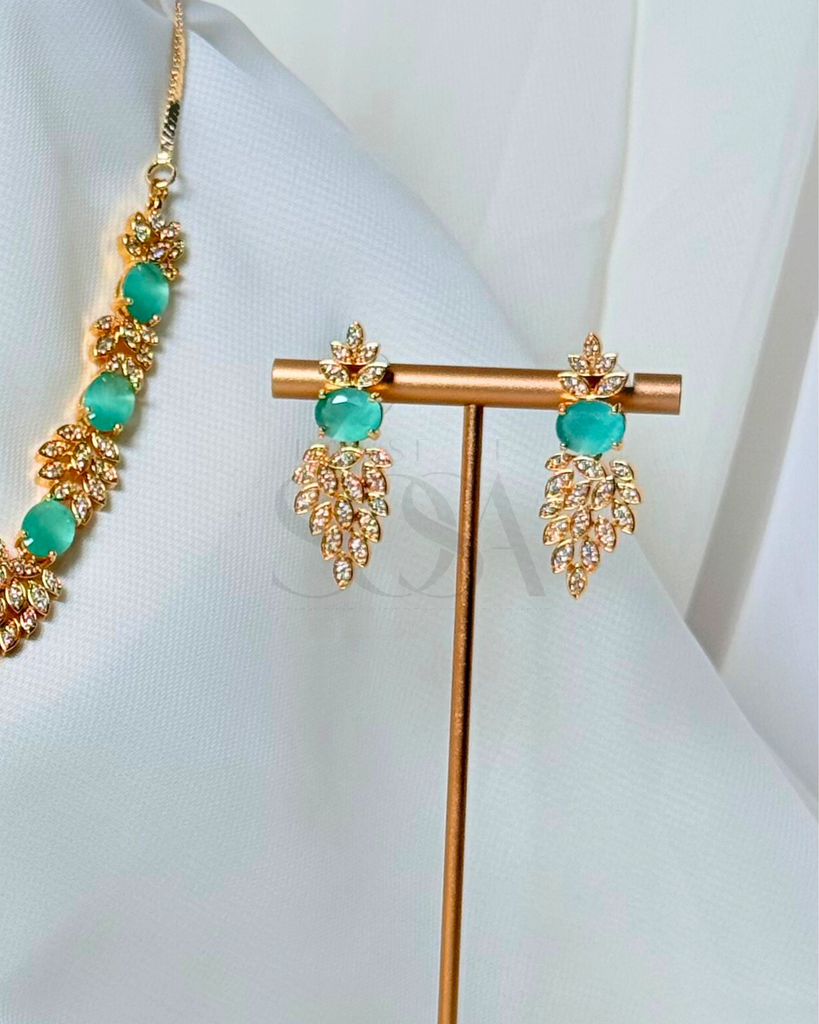 Warm, radiant, and elegantly refined, the Zaria Set (Gold) is thoughtfully curated as part of the Aurelia Collection. Featuring a graceful leaf-inspired design accented with softly faceted stones, this set is selected for its timeless beauty and luminous presence.