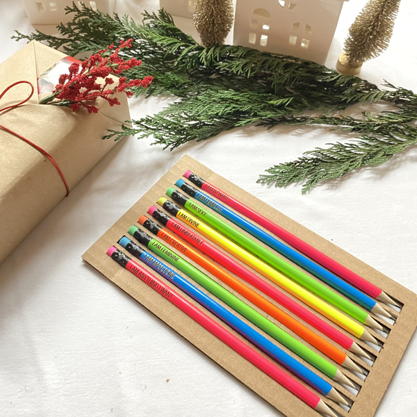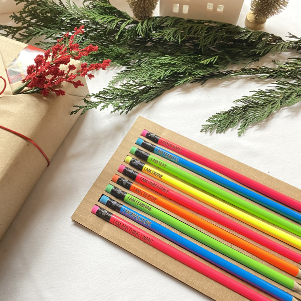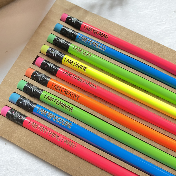 9 pencils/ Rainbow/ or color scheme with sayings: